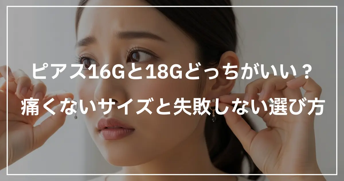 迷ったら「大は小を兼ねる」の法則で、少し太めの16Gを選んでおくと安心です。16Gのホールがあれば、後から細い18Gのピアスを着けることは簡単ですが、逆は拡張が必要になるため手間がかかりますよ。