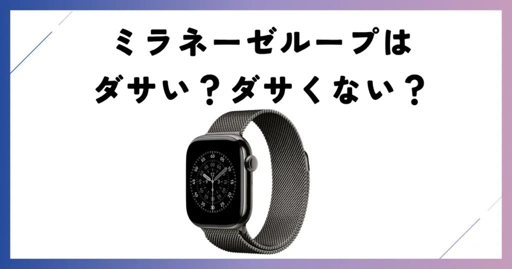Apple Watchのミラネーゼループがダサいのか?ダサくないのか?悩んでいませんか。この記事ではアンケートで集めた評判とその理由を徹底的に解説。ダサ見え回避のコツから注意点までミラネーゼループがダサいと言われないためのポイントをまとめました。 -